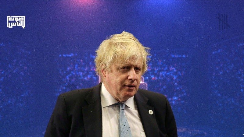 بوريس جونسون ومحمد بن سلمان يجلسان أمام علم بلديهما