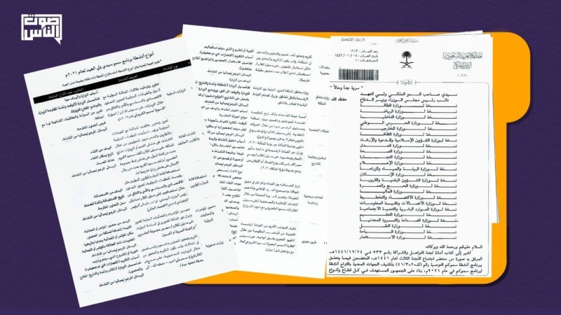في أحدث تسريب تحصّلت عليه صحيفة صوت والذي كان "وثيقة" تحت تصنيف "سريّة جدا وحالا"، تتحدث الوثيقة عن موضوع أنشطة محمد بن سلمان والصور المرافقة لها، حيث تتناول "أنواع أنشطة برنامج سيدي ولي العهد لعام 2021" بحسب نص الوثيقة، إذ تم إرسالها إلى أغلب الوزارات والدواوين التابعة للمجلس الوزاري السعودي.