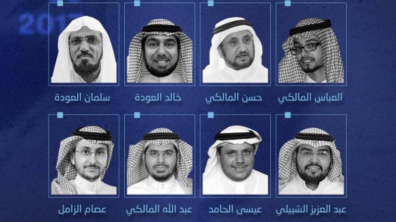 وتضم قائمة المعتقلين أستاذ القرآن وعلومه الدكتور ناصر العمر الذي يتابعه 5.5 مليون متابع، والداعية الإسلامي الدكتور علي العمري (50 عاما) ويتابعه قرابة النصف مليون مغرد، والكاتب والباحث في التاريخ الإسلامي موسى الشريف (62 عاما)، والباحث الأكاديمي والكاتب عبدالله المالكي، وعضوي جمعية حسم عيسى الحامد وعبدالعزيز الشبيلي، وغيرهم.